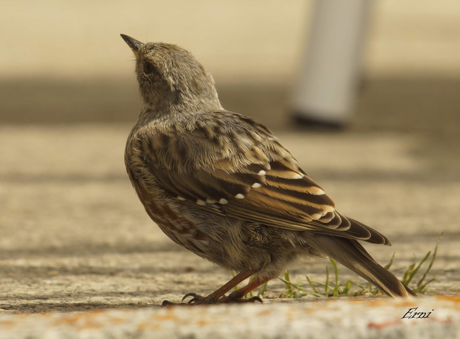 Ya de vuelta a la cabina para bajar al camping, un atrevido acentor alpino rebuscando miguitas en una cafetería de altura.