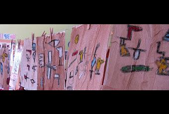 Y en la segunda fase escribimos con jeroglíficos sobre nuestro papiro en el rincón de lectoescritura imaginándonos que éramos escribas egipcios.