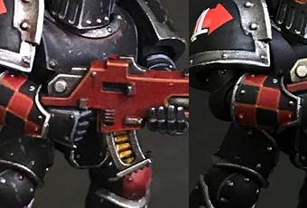 Antes de acabar el día de hoy, os quiero dejar otra de las inestimables ayudas de Poifesor en forma de tutorial/ayuda/consejo/sugerencia de pintado condensado todo en pocas imagenes. El lleva un tiempo pintado figuras de los Ángeles Oscuros de la Herejía de Horus, aunque a el le molan mas los Ultramarines. Y está ahora haciendo pruebas para representar el desgaste, las rozaduras y demás en las placas de las servoarmaduras de la Primera Legión.