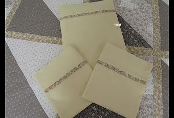 Las sábanas son para una cama diván muyyyyyy grande y al no convencerme lo que he encontrado confeccionado me he decidido a hacerlas en algodón puro de color beige y he adornado las vueltas de las almohadas y de la sábana encimera con unas tiras que me sobraron de la manta de corazones que publiqué en Marzo