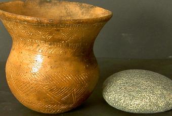 Ajuar lítico: hachas pulimentadas. mano de molino, brazalete de arquero de pizarra, sílex tallado.