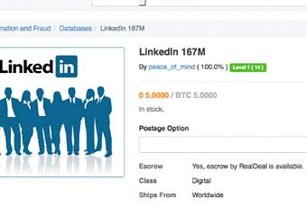 Bueno, este mismo hacker está de vuelta y esta vez tiene en sus manos 117 millones de correos electrónicos y contraseñas de usuarios de LinkedIn que están a la venta en el sitio llamado la Dark web, la oferta es de 5 Bitcoin ..que son unos ($ 2.200 dólares).