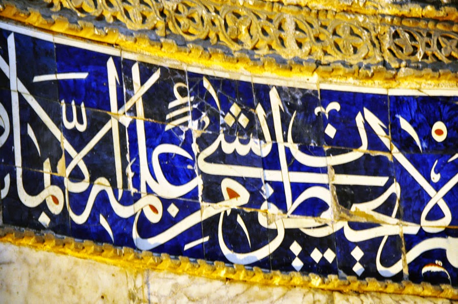Los medallones con inscripciones islámicas fueron adiciones añadidas por los hermanos Fossatti, arquitectos italianos que en a mediados del siglo XIX recibieron el encargo de la remodelación del interior de la mezquita. En mi opinión la geometría y material de estos elementos contrasta con la riqueza y severidad de la arquitectura de la iglesia y le dan cierto carácter de improvisación y efimeridad.