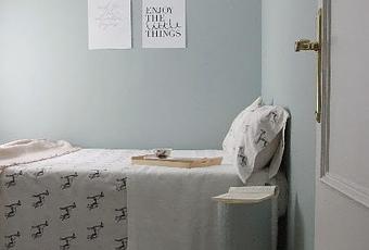 "La altura a la que hice el corte fué a 50 cm a contar a partir de la moldura del techo, para lo que me ayudé de cinta de pintor para delimitar la transición"Tengo que deciros que mis techos son bajitos y con esta técnica he ganado en altura, así que estoy muy contenta con el resultado.