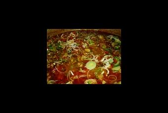 El 1/2 litro de aceite restante lo prepararemos con las tres cucharadas de onoto, para ello lo colocaremos en una ollita con el onoto y calentaremos sin que llegue a hervir durante unos minutos hasta que el onoto haya desprendido suficiente color y se torne naranja intenso, retiramos del fuego, colamos y agregamos a la carne. Se cocina por 5 minutos más.