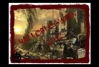 Un año más ya está aquí, ya llegó, el dorado otoño que alfombra calles y campos de hojas secas y crujientes.¿No os gusta pisar esas hojas?Pero ¿y si hay algo oculto debajo?Un sonido metálico al pisar puede ser un cuchillo ensangrentado...O una trampa que se clava en tu tobillo en algún bosque oscuro y solitario...Quizá las hojas ocultan la entrada a la cueva de algún monstruo...Pero no, este año no voy a dejar que vuestra imaginación vuele demasiado lejos, como las hojas arrastradas por el viento.Porque este año, este 2012 que estamos viviendo, es EL AÑO DEL FIN DEL MUNDO.¿Ya os habíais olvidado? Claro, hay mejores cosas de las que preocuparse de una antigua profecía maya, y además el mundo no se puede acabar el 22 de diciembre de 2012, porque ese día se sortea la Lotería de Navidad en España, y me va a tocar a mí, ejem... ¿Por dónde iba?Ah, sí, que este es EL AÑO DEL FIN DEL MUNDO.Así que este año toca tema genérico para la convocatoria del Halloblogween:“VISIONES DEL APOCALIPSIS”.