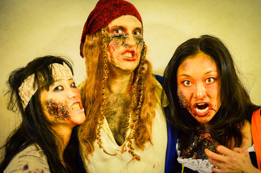 Si el año pasado la temática que escogimos fue de zombies, este año, y dado que nos gustó jugar con el maquillaje, elegimos disfrazarnos de piratas fantasma. Y como mejor unas fotos que no explicároslo con palabras aquí unas fotillos del making up y de los disfraces finales.