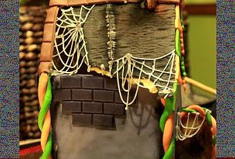 Cuando estaba a punto de tirar todo a la basura, se me ocurrió la idea de hacer una casita de Halloween en ruinas, no nos la podríamos comer pero por lo menos podría publicar este post, así que me puse manos a la obra nunca mejor dicho, porque coloque la glasa para unir las galletas con el dedo, tuve que hacer ladrillos de fondant para tapar agujeros de los laterales, el techo fue cubierto de glasa en forma de tela de araña y así poco a poco fui dando forma a esta ruina de casa.