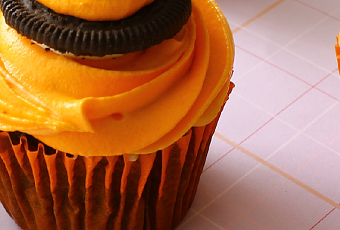 1 paquete de chocolates KissesBaño de queso crema naranja (cantidad necesaria) Preparación En un bol cernir la harina, el polvo de hornear y el cacao. Reservar. Mezclar en un tazón el aceite con el azúcar y la vainilla con batidora de alambre. Añadir uno a uno los huevos hasta que se queden muy bien mezclados, no se necesita batir mucho. Agregar los ingredientes secos cerniendolos y alternándolos con la leche. Verter la preparación en moldes cubiertos con pirotines y llevarlos a horno precalentado a 180° C. por 25 min. o hasta que al introducir un palito este salga limpio.