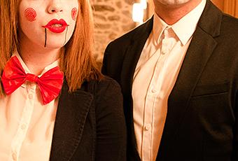 Como todos sabéis, el pasado fin de semana se celebró el día de todos los santos, y aunque no era tradición en nuestro país, ahora en la víspera también celebramos Halloween a, si es que, en cuestión de fiestas, para nosotros todas son pocas. Hacía varios años que no me disfrazaba, y he de reconocer que me apetecía, así que una la fiesta de cumple con esa temática y esa noche fue perfecta. En cuanto al disfraz, fue elección en el último momento y nada meditado. Nos plantamos en viernes, después de una semana sin un minuto libre, y tiré por buscar algo fácil por Pinterest, encontré a Billy, ropa que tenía en el armario y un maquillaje que, mejor o peor, me atrevía a hacerlo, y así fue ¿Que os parece? Rubén, imitando mis pasos, apostó por reproducir a Jack, en este caso el maquillaje fue obra de mi hermana, que ya podréis ver que ella se lleva el premio gordo.