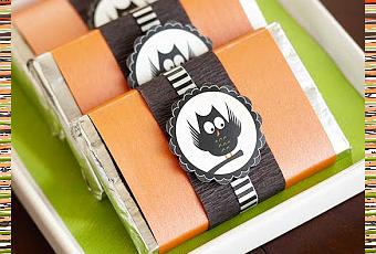 Una buena idea es armar envoltorios personalizados, en el caso de tener varios sobrinos o niños que te vayana visitar. Con ello le das un toque más agradable. Alfajores-murciélago, necesitas alfajores de chocolate, grageas de chocolate y chocolate cobertura. Debes derretir el chocolate cobertura y cortarlo con la forma de las alitas, luego insertar las alas en cada lado del alfajor. Terminas agregando los ojos (gragea blanca) y poniendole un puntito de chocolate. Otra idea divertida que puede hacerse con bombones bom o bom y golosinas, Para estos cupcakes momia, solo necesitas magdalenas de chocolate, crema de manteca color natural, grageas de colores y mucha imaginación ¿Y que dices de estos fantasmitas hechos con merengue y chocolate? Momias de panchos , corta tiras de tapas de tartas y envuelve los panchos con ellas, lleva al horno hasta que dore y has los ojitos con mostaza.