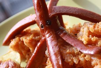 Wir werden uns also alle verkleiden (Noah hat bestimmt mit seinen 3 Jahren das erste Mal richtig Spass daran) und ein bisschen rausgehen, mal gucken was wir so alles ausbeuten :)Bei uns zuhause möchte ich aber natürlich auch, wie jedes Jahr, das ein oder andere "Monster-Rezept" ausprobieren und heute hab ich hier für Euch die erste Idee; einen Würstchen-Oktopus.Wie immer ist das Rezept super einfach nachzumachen, darum hat mir die Idee auch so gut gefallen. Ihr schneidet einfach ein Würstchen an beiden Enden in vier Teile (in der Mitte lassen wir ca. 2 cm), dann wird es in heissem Öl gebraten. Nun nur noch zwei Pfefferkörner als Augen hineinstecken und fertig. Gefällt Euch die Idee?