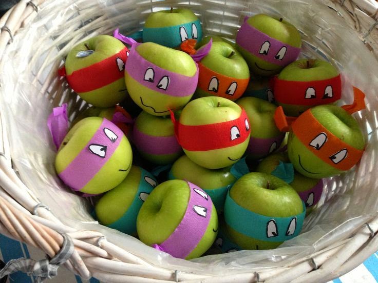 Amé las manzanas de tortuga ninja. Solo es papel de china con ojos pintados.