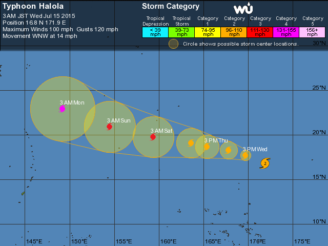Lo más importante para destacar es que "Halola" seguirá aumentando su fuerza en los próximos días, con un movimiento Oeste - Noroeste y afectando a la Isla Wake en las siguientes 24 a 48 hs.Otra información importante para mencionar es que "Halola" podría convertirse en un poderoso supertifón de categoría 4 hacia finales de esta semana o principios de la otra y pudiendo afectar el norte de las Islas Marianas(EE.UU). Igualmente con el correr de los días iremos actualizando la evolución del sistema y cual será su trayectoria definitiva.