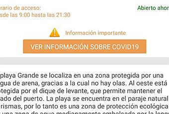 La app permite la personalización con la imagen de cada municipio, aportando datos específicos relevantes de los servicios que incluyen sus playas (socorrismo, chiringuitos, hamacas, perros, etc).