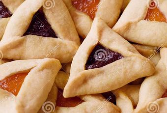 4 tazas de harina4 huevos3/4 taza de azúcar1 taza de margarina ablandada1 cucharada de jugo de naranja1 cucharadita de extracto de vainilla2 cucharaditas de polvo de hornearUna pizca de sal1 cucharadita de cáscara de naranja ralladaRellenosMedio kilo de semillas de amapola oMedio kilo de lekvar (jalea de manzana o ciruela)O medio kilo de conserva de frutilla o albaricoquePrecaliente el horno a 350 grados.Aceite bandejas para galletas.Ponga todos los ingredientes en un bol para mezclar grande y bátalos. Puede agregar un poco mas de jugo o harina, depende de la consistencia de la masa. Forme una bola con la masa. DivÃdala en cuatro partes.Proceda a armar y hornear de acuerdo al Hamantashen ilustrado