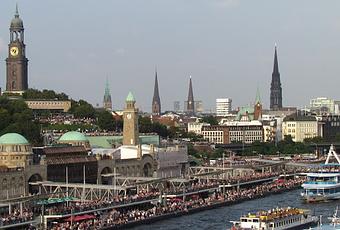 El Ayuntamiento de Hamburgo preside una gran plaza situada frente a una de las orillas del Alster. Un llamativo edificio con una gran torre del reloj muy ornamentado y con muchas estatuas decorando sus balconadas donde sus tejados verdes dan un toque de color a los plomizos cielos de Hamburgo.