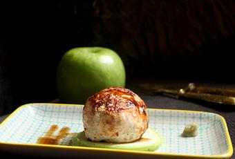 sarten o plancha, extiendes el aceite. Marcas la hamburguesa por todos los lados, bajas a fuego medio, deberá hacerse por dentro. Colocas en la base de tu plato las láminas de Manzana, encima la hamburguesita y acompañas con la salsa que más te guste, yo lo he hecho con wasabi (me apasiona ese sabor y ese picor que dura segundos) y Teriyaki. No dejéis de hacerla, receta de dieta con un sabor excelente, muy fusión y muy fresca. Espero que os guste, bssss
