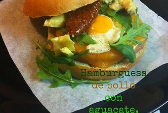 Para que la hamburguesa no sea tan calórica está preparada con carne de pollo y el aguacate, el tomate seco en aceite y la rúcola le aportan el puntito gourmet que la diferencia de las burguer normales.