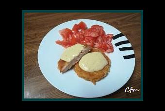 Y ya está...Emplatamos poniendo las hamburguesas y echando por encima la salsa...Podemos con una refrescante ensalada de tomate...Buen provecho..