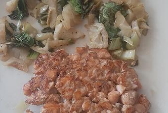 Cortar el hinojo (pack Choi) en tiras y saltearlo.