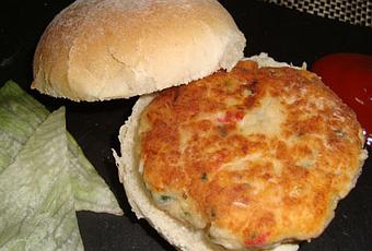 Formamos las hamburguesas y las pasamos por harina y las hacemos en una sarten con un poco de aceite.