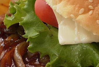 colocar la hamburguesa sobre el pan y aderezar con la cebolla caramelizada.
