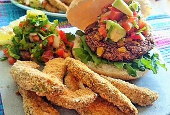 Para los aguacates fritos:♥ 1-2 aguacates grandes, peladas y cortadas en gajos♥ ½ taza de leche vegetal♥ ½ taza de harina de trigo♥ ½ taza de pan rallado♥ 2 cdtas de orégano♥ ½ cdta de sal♥ ¼ cdta de pimienta negra