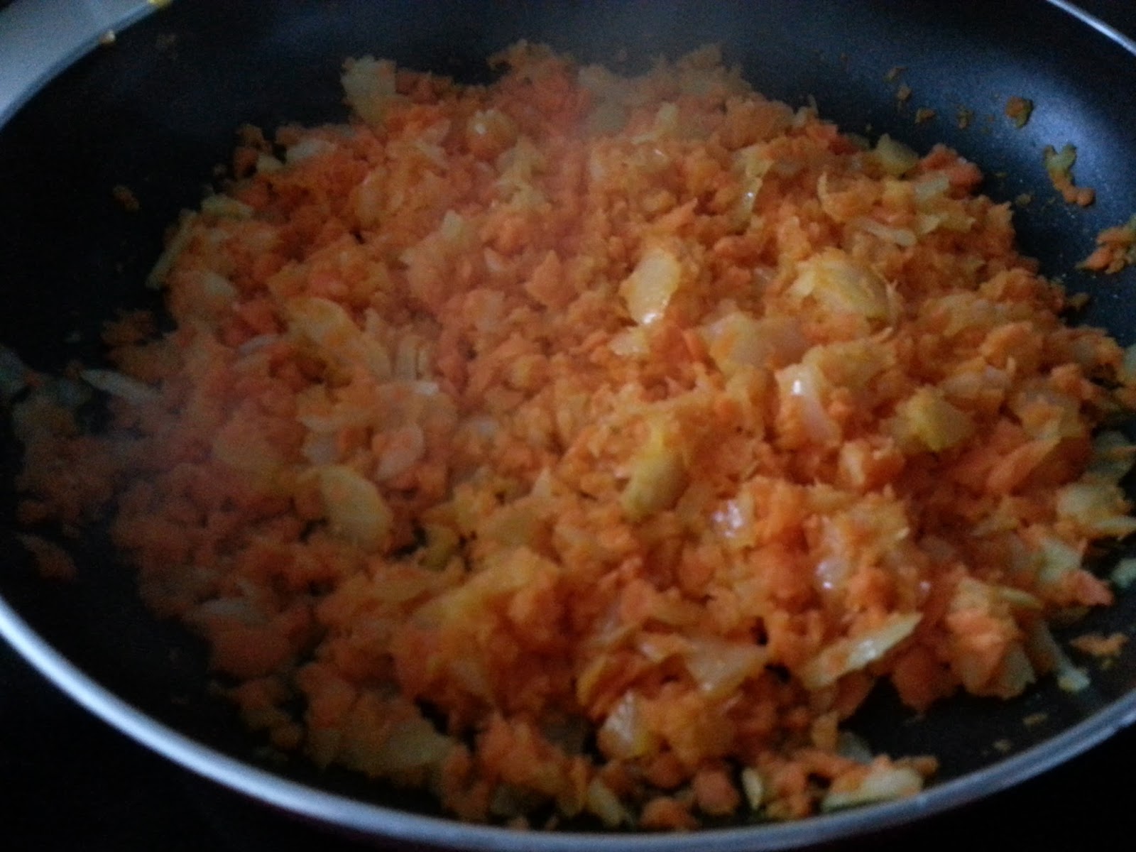 2. - Mientras rallamos la zanahoria y cuando la cebolla esté un poco transparente se la añadimos.