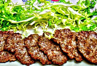 Echamos un poco de sal, canela, el ajo, pimienta y por último el romero y volvemos a amasar todo durante 2 minutos, es importante que se mezclen bien las carnes y las especias.Cortamos un trozo de papel film y colocamos sobre la encimera extendido, y a continuación vamos haciendo bolas con nuestra carne y las colocamos encima del papel dejando hueco entre ellas, cortamos otra tira igual de grande de nuestro plástico y la ponemos encima de las bolas de carne y vamos aplastándolas hasta que quedan unas hamburguesas muy finas, y reservamos durante 10 minutos.