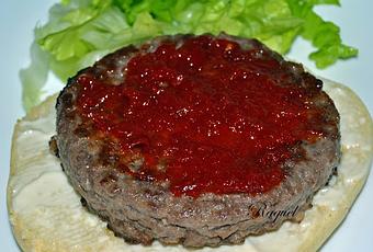Un kilo de ternera picadaSalPimientaMermelada de pimientos rojos aquí la recetaPreparación: