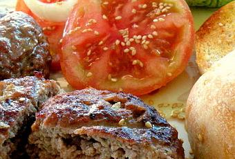 Con la ayuda de la báscula de cocina, hacemos porciones de unos 150 grs. cada una. (Si hay en casa buenos comedores, las hacemos de 200, pero ya sabéis que saldrán menos). Formamos unas bolas, como si fueran albóndigas, apretándolas bien (Fijaos que no llevan huevo ni pan) y cuando tenemos una bola bien formada, las achatamos presionándolas y dándoles la forma tradicional de hamburguesa, dejándolas de un grosor aproximado de unos 3 cms. para que se nos hagan uniformemente en la parrilla o en la plancha.