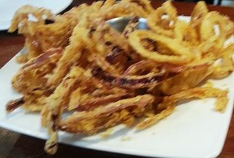 De los aritos diremos poco pero tenedlo en cuenta si váis: son los mejores aros de cebolla que hemos comido nunca. Fritos al estilo madrileño, como se frien al lado, en la Plaza Mayor, los calamares. Son una delicia: