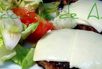 - Formar las hamburguesas y hacer en la plancha con un chorrito de aceite; cuando estén casi hechas, poner una loncha de queso cheddar encima de cada una.