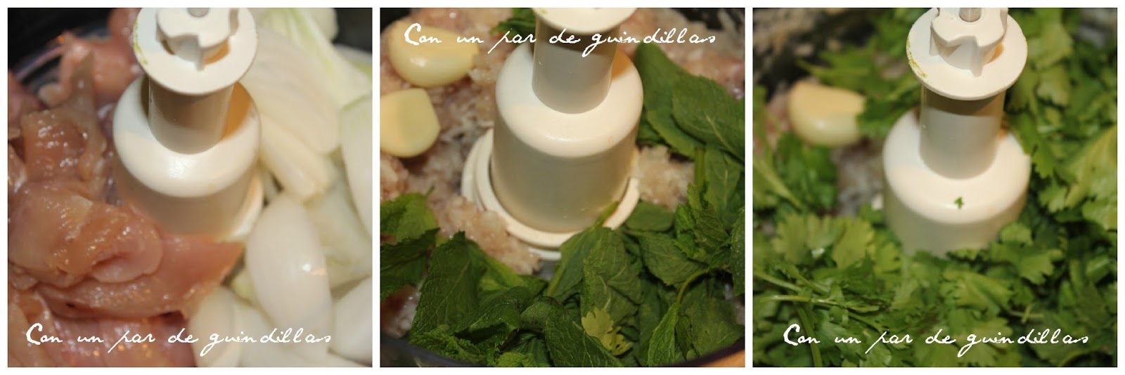 1.- En la picadora pongo elpavoy lacebolleta. Trituro y agrego elajoy las hierbas