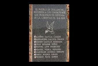 El monolito derrumbado hoy se podía leer: "El pueblo de Chillón en recuerdo a los compañeros que murieron en defensa de la libertad el 3 de junio de 1939" aunque el alcalde esta convencido de que, tras la recuperación de sus cuerpos, "su recuerdo prevalecerá con más fuerza entre todos los vecinos de Chillón".
