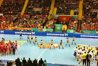 Nuestra ciudad que, con el Palacio de Deportes de San Pablo, ha sido sede de los dieciocho partidos del Grupo B de la fase preeliminar, vio como ayer se disputaba el último partido entre macedonios y daneses en una ambiente de deportividad y excelente balonmano.