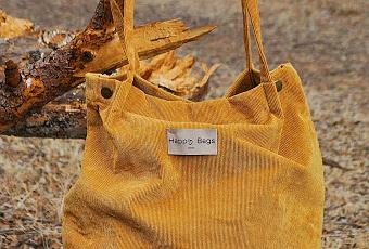 Para la realización de los bolsos se utilizan materiales variados, desde pana hasta polipiel. Lo que tenemos claro es que nunca venderemos productos de piel, buscaremos alternativas a esto. Los bolsos se confeccionados en un estudio ajeno a Happy Bags, pero esperan tener el suyo propio próximamente.