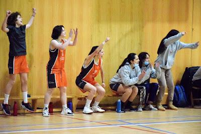 El banquillo del Bàsquet Safa Claror celebra una canasta ante el AB La Salle Tarragona. Foto: Toni Delgado / Cronómetro de Récords.
