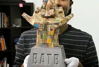 Debido a que las tablas de patinetas están hechas de capas de madera procesada, las esculturas finales parecen tener superficies rayadas.