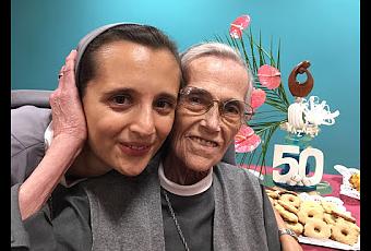 Aún recuerdo como si fuera ayer el día en que pisé la Resi por primera vez. Era septiembre de 2004, hacía calor, acababa de aterrizar en Tenerife, sin entender ni hablar nada de español, buscaba un lugar donde quedarme, encontré la Resi, y en la Resi te encontré a ti. Tenías muchos dones Eve, uno de ellos era el de hacer sentir a todas tus residentes como en casa, y así me sentí yo nada más conocerte, y ahí me quedé. Luego pasaron muchas cosas. Recuerdo tu alegría el día que te dije que quería entrar en la Congregación, tu apoyo cuando se lo tuve que explicar a mis padres, tus detalles hacia ellos cuando vinieron a verme; las clases de repostería, las visitas a tus pájaros, o cuando antes de rezar en la capilla nos contabas que de joven cantabas en la catedral de Los Realejos. Después volví a la Resi de juniora. Acababa de salir del noviciado, y aún tenía mucho camino por hacer, pero contigo fue más fácil, porque en todo lo que hacías o decías había tanta exigencia cuanto amor y cariño. Me vienen a la cabeza miles de fotogramas de aquellos 3 años: las excursiones al Teide, las visitas a tu casa, los ratos de portería, las patatas fritas de los domingos, las conversaciones profundas, tus "mucho fundamento", tu testimonio de vida. Luego vino mi enfermedad. Recuerdo tu abrazo tan fuerte el día en que te dije que estaba enferma y que me iba a Barcelona. Y desde entonces, tus mensajes de ánimo constantes. "Rezo por ti", "Mucha fuerza, el Señor está contigo", "Te quiero mucho". Hasta que también llegó tu enfermedad. Esta enfermedad que hoy se ha llevado tu cuerpo. Hace unos días, en la última conversación que tuvimos, me dijiste que aunque te daba pena morirte, estarías feliz de volver a estar con tus padres, tu hermano y tu sobrina. Me dijiste que allá arriba estarías mejor que aquí. Que estarías con Dios. Y así quiero imaginarte ahora. Feliz, sin dolor, rodeada de los tuyos, y al lado de Dios. Eve, aquí en la Tierra se te va a echar mucho de menos, pero me mueve la esperanza de que antes o después nos volveremos a ver, y esta vez será por siempre. ¿Y sabes qué? Ahora la muerte me asusta un poco menos porque sé que cuando llegue allá arriba estarás tú, como el día en que llegué a la Resi, quizá con una sopita o un bizcocho a punto, y me sentiré como en casa. Eve, desde el Cielo, cuida siempre de nosotros. Te quiero mucho.