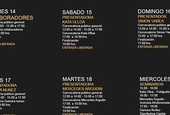 Cada día de exposición distintos colaboradores del proyecto serán los presentadores de la muestra visto desde su perspectiva según su área de trabajo. El sábado 15 de abril es el turno de Kata Ulloa (fotógrafa); domingo 16de abril presenta Simón Varea (director de fotografía); lunes 17/04 estará Gamara Nuñez (diseñadora capilar); 18/04 Mercedes Argudin (activista afrofeminista) y el domingo 19/04 se realizarán cuatro seminarios dictados también por integrantes del equipo, de 18:00 a 19:00 hrs Cebra expondrá sobre lo que ha sido la creación y producción del proyecto.