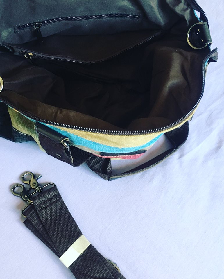 Son dos estilos completamente distintos como podéis apreciar, uno tricolor y el otro oscuro. Ambos sirven para ponerlos de bandolera, aunque el primero se puede llevar también de las asas y al hombro.
