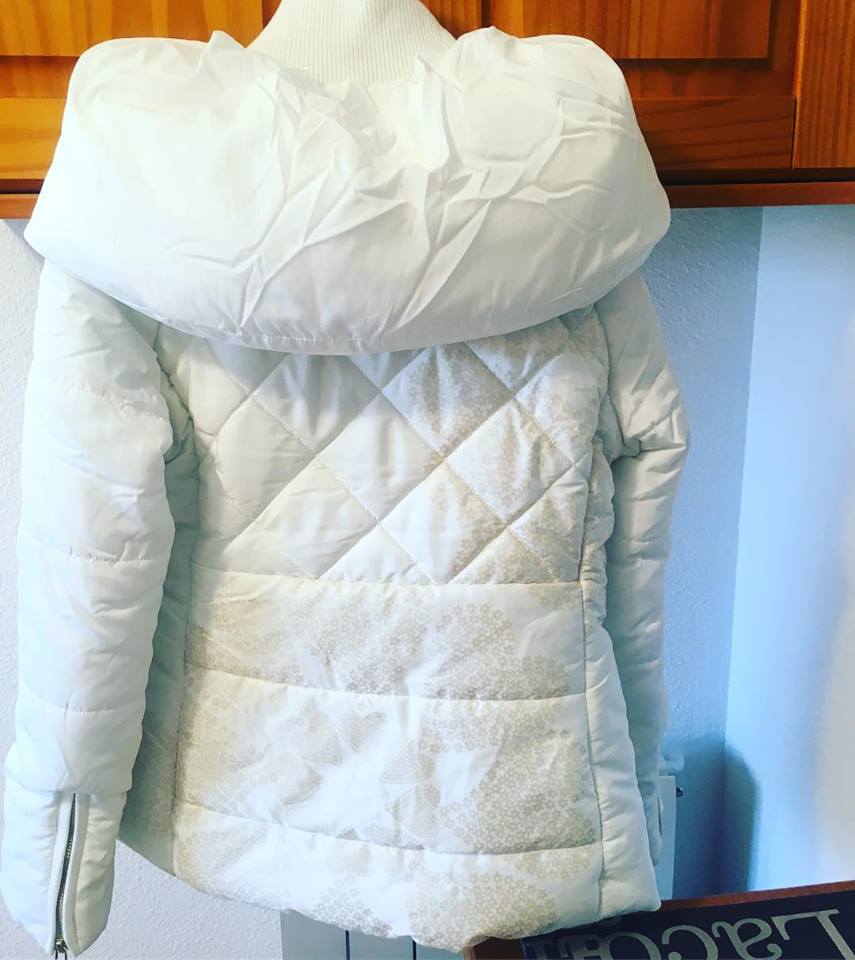 Veis el cuello de pelito pues se quita, lleva unas cremalleras, y las mangas también se quitan, y eso es lo que nos ha convencido a ambas. De cuerpo la queda super bien (yo creo que aunque dice que no se va a quitar de encima el blanco, al final será este quien lleve más trote).