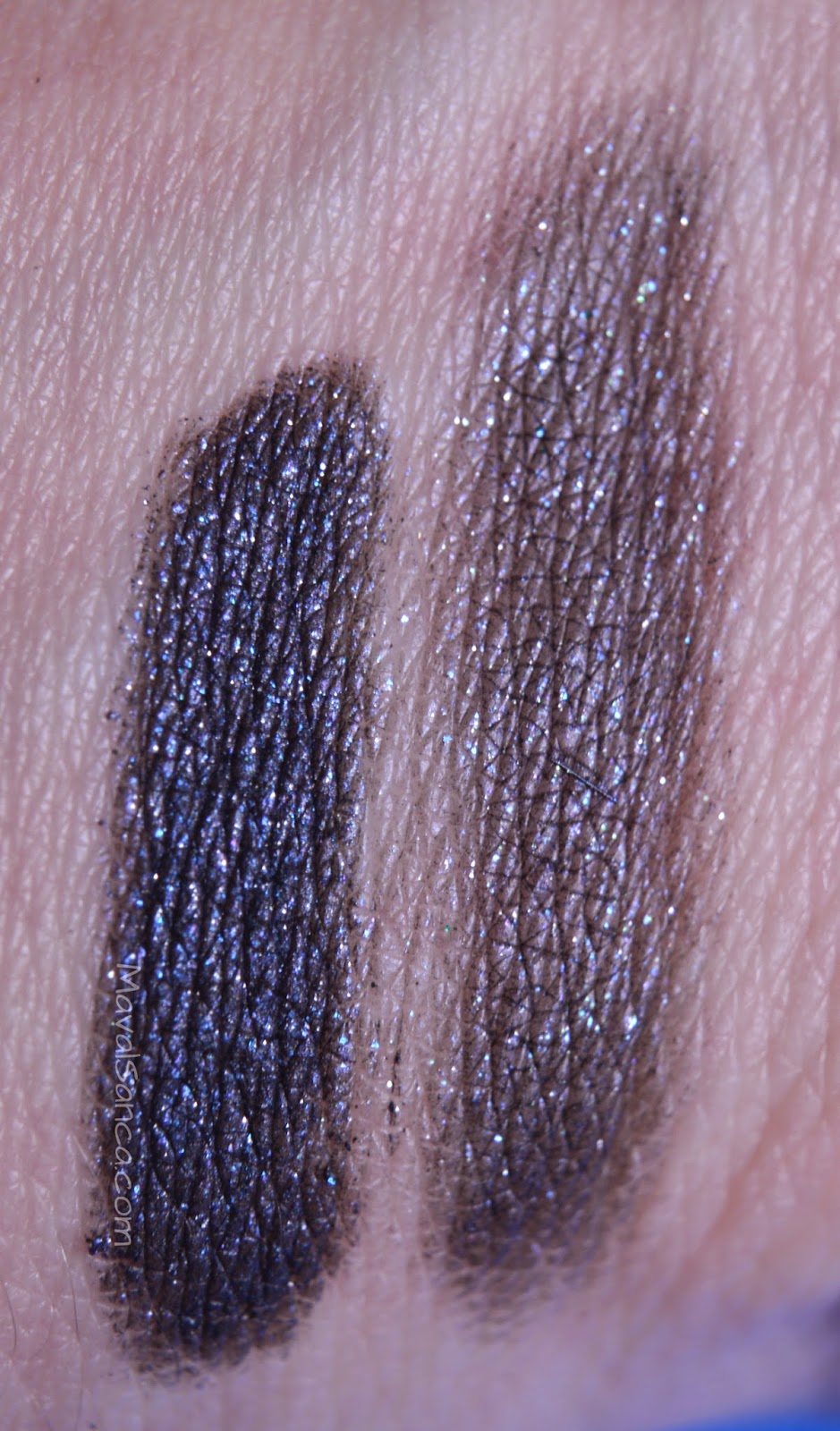 Estas sombras en formato jumbo me gustaron por su acabado metalizado y sus destellos.