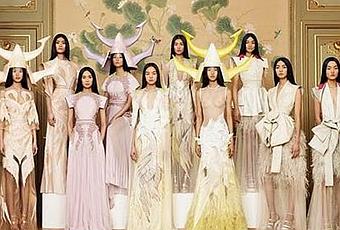 Las modelos, todas orientales, parecen delicadas guerreras que cambian las armaduras por vestidos de gasa, organza y finos bordados. Los tocados, realizados por Philip Treacy, y las chaquetas que parecen kimonos recogidas con un obi, faja ancha de tela fuerte que se lleva sobre el kimono para cerrarlo, son la nota de exotismo.