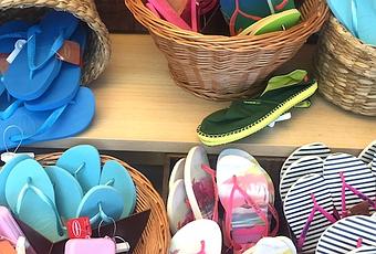 Entrar en esta tienda nos permite vivir un poco del universo Havaianas, tantos colores y modelos y muchos accesorios como los bolos o los clutchs que dan inmediatamente ganas de playa y alegría.