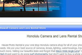 Foto Alquiler de Hawaii es su una parada Honolulu cámara única para todas sus necesidades de alquiler de fotografía y cámara. Somos tu mejor fuente de cámaras, lentes, iluminación, waterhousings, trípodes, tarjetas de memoria y mucho, mucho más. Visitar nuestro bello estado y se olvidó de que Nikon Wide Angle Lens? Acaba de comprar la nueva Canon 5D Mark II y desea hacer alguna fotografía de surf, pero no quiere comprar un waterhousing conjunto? Ir en un viaje de pesca Maui y quieren capturar el más grande? ¿O simplemente un fotógrafo normal, que siempre ha querido rodar una Canon 600mm zoom, pero no puede justificar la compra del mismo. Entonces ha encontrado el lugar correcto. Por tan sólo unos pocos dólares al día, ofrecemos el uso de todos los equipos de gama alta de la cámara de Hawaii su necesidad. Examinar nuestra sección de Canon y las mejores ofertas en contacto con nosotros hoy!