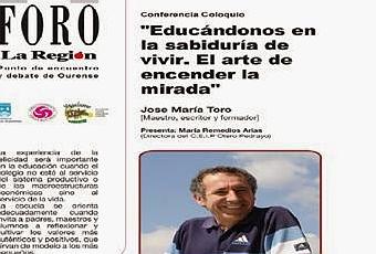 El mal momento económico también puede tener un lado positivo. Al menos, así lo cree el maestro y escritor José María Toro Alé. "Hay que vivirla como una oportunidad para recuperar el sentido común en el vivir, el trabajo, la economía, en todo", dijo. Hoy ofrecerá la charla titulada "Educándonos en la sabiduría del vivir. El arte de encender la mirada", en el programa del Foro La Región y la asociación cultural y educativa Vagalume, que la incluyó en los "XIII Encontros Familia-Escola. Crecer como persoa para educar crecendo". Será en el salón de actos de la Casa Consistorial de O Barco, a las 19.30 horas.