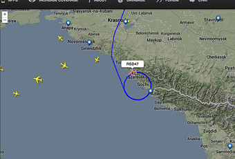 El avión se puede seguir en Flightradar24.com y Planefinder.net dando vueltas sobre Sochi (no muy lejos de los dos buques de guerra estadounidenses que hay estacionados en el Mar Negro).